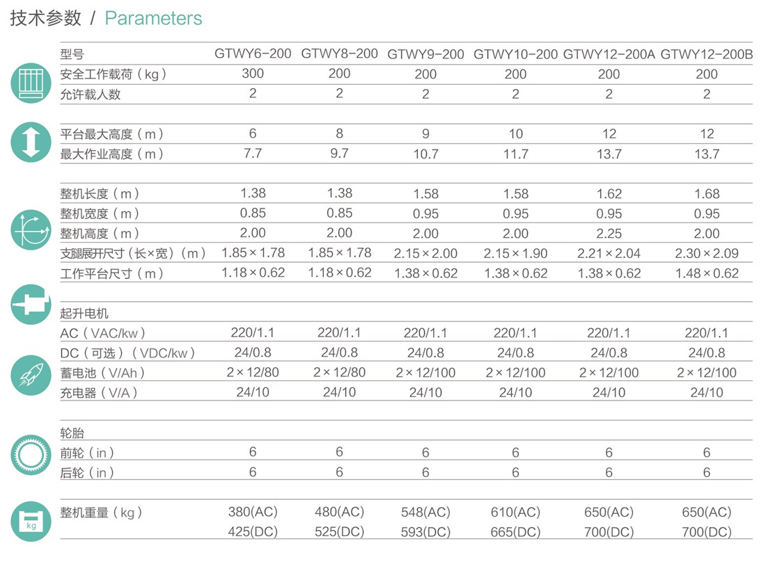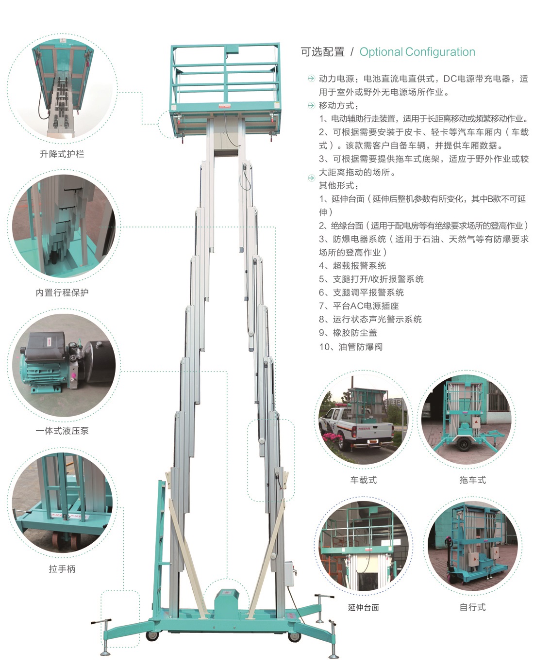 平臺最大高度規格:可選4m、 6m、8m、9m、10m